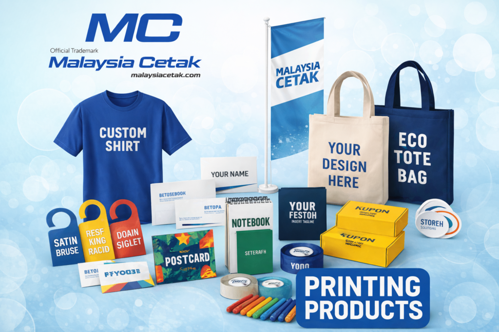 Malaysia Cetak adalah pusat percetakan sehenti anda. Misi kami adalah untuk menyediakan perkhidmatan percetakan yang berkualiti tinggi dan mampu milik, disokong oleh khidmat pelanggan yang cemerlang untuk membantu jenama anda menonjol